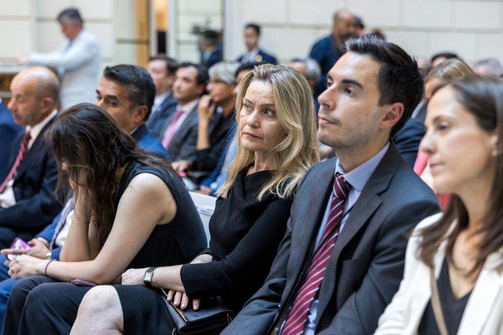 La ceremonia, celebrada en el patio central del Palacio, ha contado con la asistencia de diversas autoridades, como el presidente del Tribunal Constitucional y ex Fiscal General, Cándido Conde-Pumpido; la presidenta del Consejo de Estado, Carmen Calvo; el presidente de Eurojust, Michael Smith, y el secretario de COMJIB, Enrique Gil Botero.