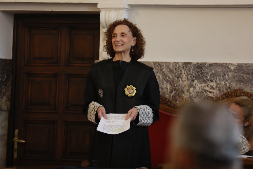 Por su parte Eiró, primera mujer al frente de la Fiscalía Superior en Galicia, ha pronunciado un discurso íntgramente en gallego en el que ha defendido la Fiscalía como "un cuerpo único y comprometido con la verdad y con la ley".