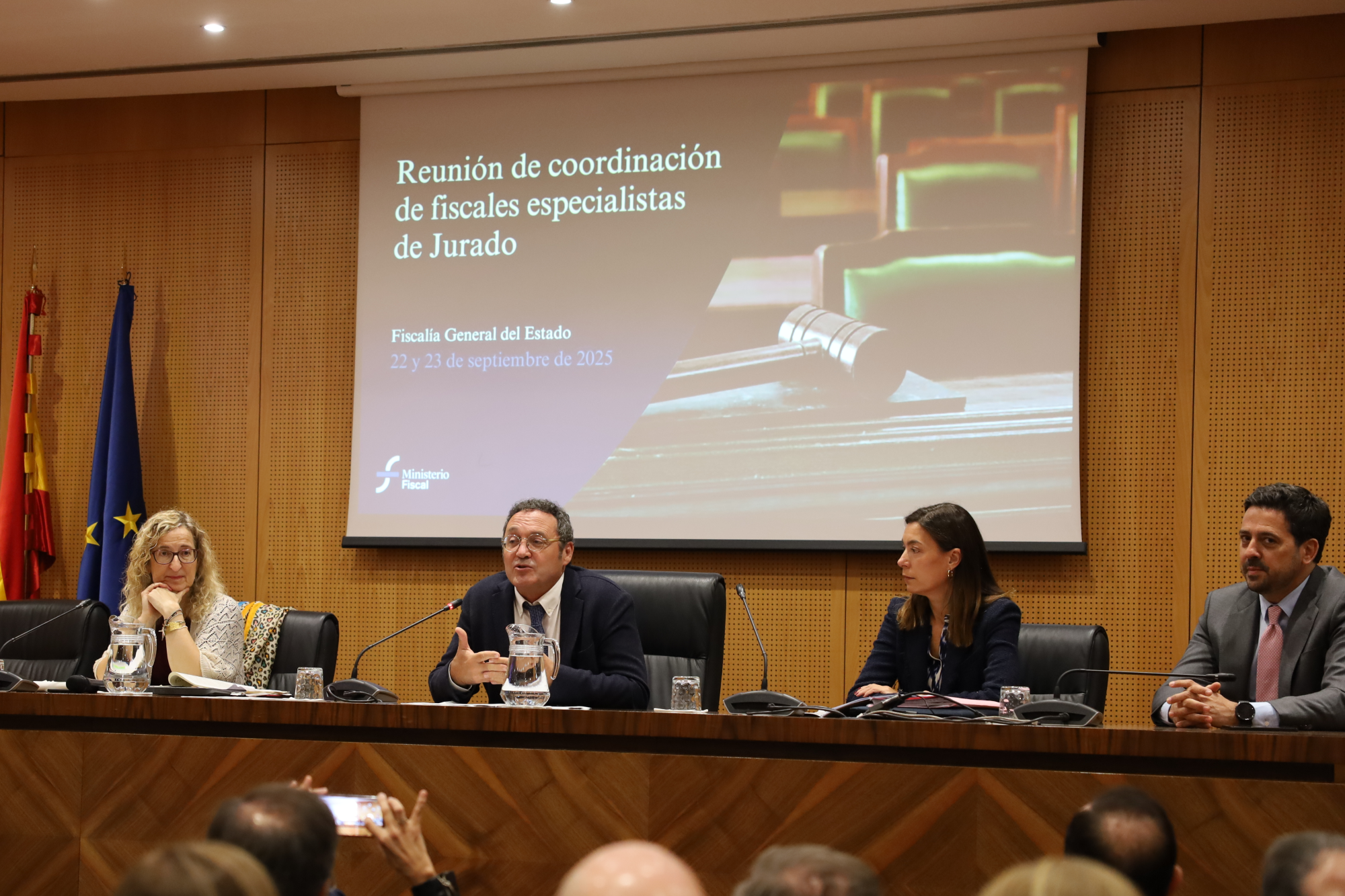 García Ortiz también ha agradecido la dirección de este encuentro, a cargo del Teniente Fiscal de la Secretaría Técnica de la FGE, Diego Villafañe, y su organización por parte de la propia Secretaría Técnica y los servicios del jurado de las Fiscalías de Madrid y Barcelona. En concreto, ha agradecido su labor a la responsable de formación de la Carrera Fiscal, la fiscal María Isabel Martín, a la Coordinadora del servicio de jurado de la Fiscalía Provincial de Barcelona, Elena Contreras, y la Coordinadora de la comisión de jurado de la Fiscalía Provincial de Madrid, Marta García de la Concha.