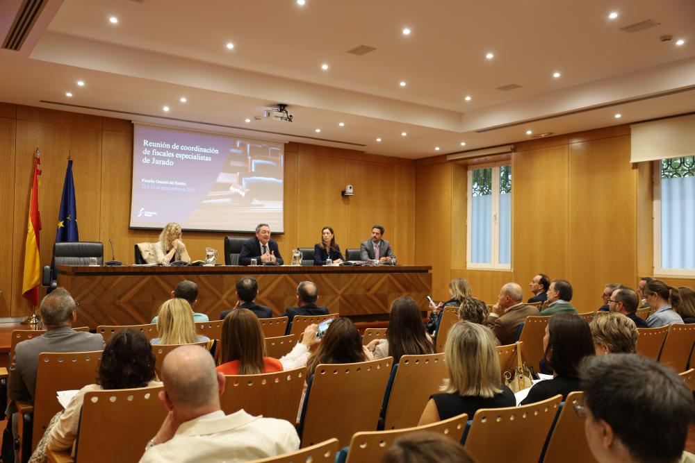 La Reunión de coordinación de fiscales especialistas de Jurado, que reúne a fiscales llegados de todos los puntos de España, concluirá hoy después de haber abordado la problemática a la que se enfrentan las y los fiscales que deben ejercer en casos de juicios con jurado popular.