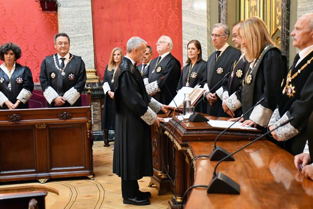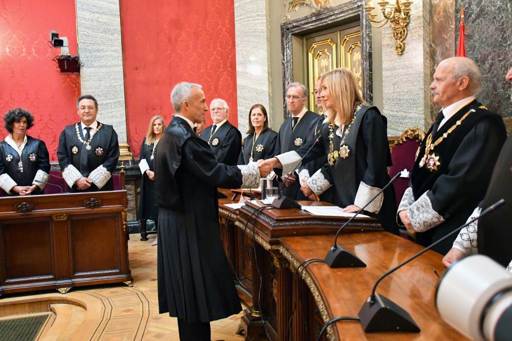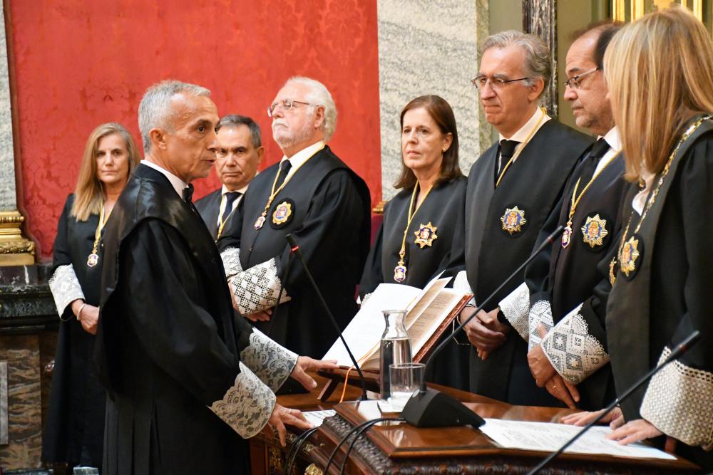 Previamente al acto de toma de posesión celebrado en la Fiscalía General, el nuevo Fiscal Togado ha prometido su cargo ante la Sala de Gobierno en el Salón de Plenos del Tribunal Supremo.