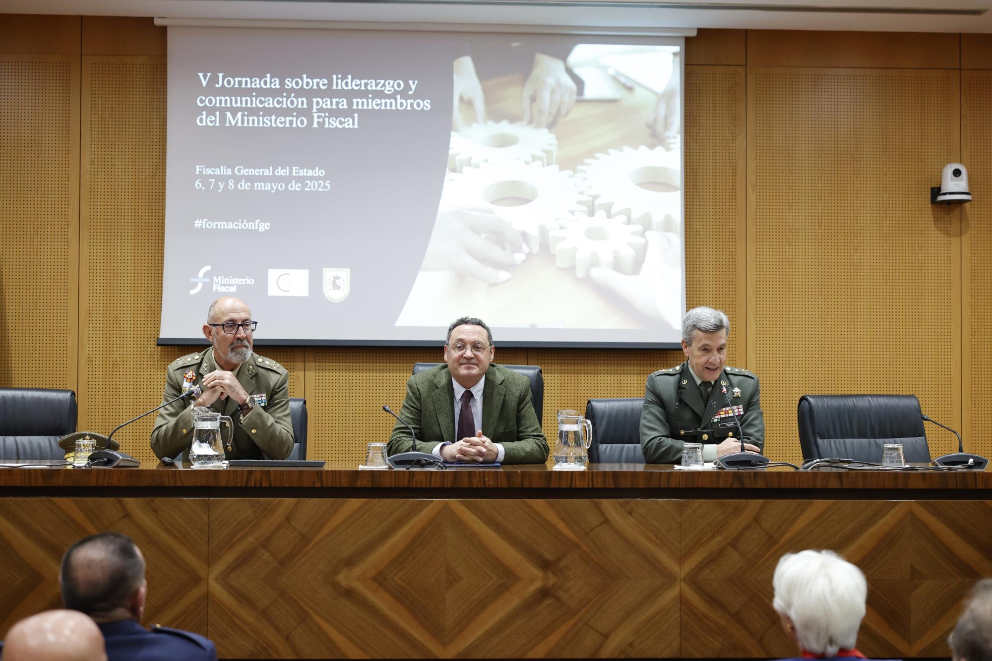 “Necesitamos el conocimiento y la experiencia de una institución como el Ejército español, que lleva siglos formándose en cómo y de qué manera mandar, cómo convencer, transigir o ser capaces de hacer que los colectivos funcionen de una manera única, dirigida y convencida también de lo que tienen que hacer”, ha asegurado en la inauguración de las V Jornadas de Liderazgo y Comunicación para miembros del Ministerio Fiscal, en la que ha estado acompañado por el Fiscal Togado Jefe de la Sala Quinta del Tribunal Supremo, Antonio Pulido, y el Teniente General Director del Centro de Estudios de la Defensa Nacional (CESEDEN), Miguel Ballenilla.