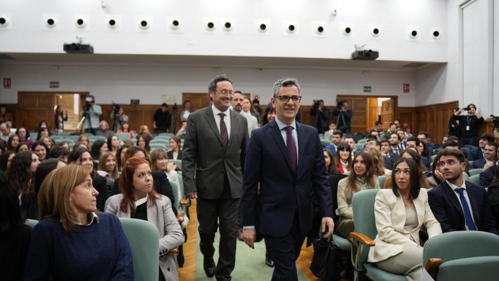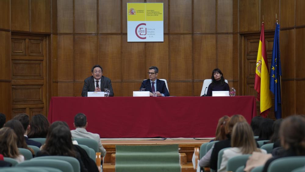 El Fiscal General del Estado, Álvaro García Ortiz, y el Ministro de la Presidencia, Justicia y Relaciones con las Cortes, Félix Bolaños, han inaugurado hoy en el Centro de Estudios Jurídicos (CEJ) el curso selectivo de la 62ª promoción de acceso a la carrera fiscal.