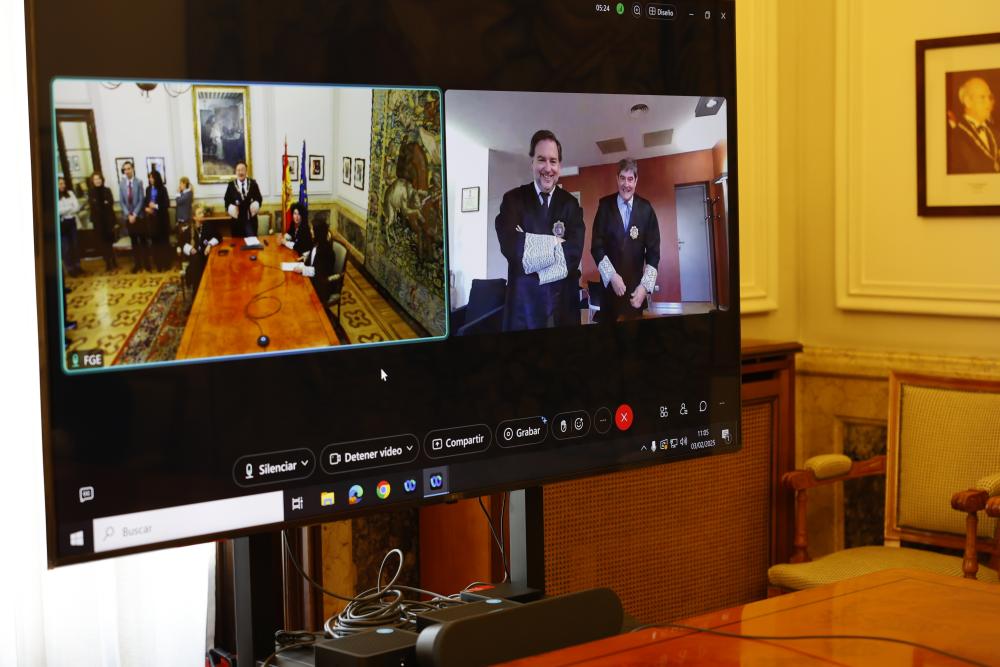 El acto, celebrado de manera virtual, ha estado presidido por el Fiscal General del Estado, Álvaro García Ortiz, quien ha estado acompañado de la Teniente Fiscal del Tribunal Supremo, Mª Ángeles Sánchez Conde, y la Fiscal Jefa de la Inspección, Mª Antonia Sanz Gaite. Han asistido también las Fiscales de Sala de la Unidad de Apoyo, Esmeralda Rasillo, y de la Secretaría Técnica, Ana García León.