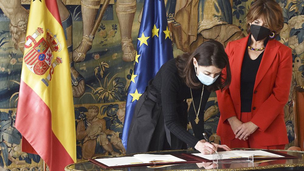 La Fiscal General del Estado, Dolores Delgado, y la Ministra de Justicia, Pilar Llop, han suscrito esta mañana el Convenio de colaboración entre el Ministerio Fiscal y el Ministerio de Justicia en materia de prevención de riesgos laborales, un avance para los derechos de los/as fiscales.