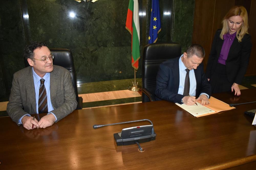 El Fiscal General del Estado, Álvaro García Ortiz, ha firmado hoy en el Palacio de Justicia de Sofía un Memorando de Entendimiento con su homólogo búlgaro, Borislav Sarafov, por el que ambas instituciones se comprometen a intercambiar información sobre terrorismo y delincuencia organizada, además de mejorar las solicitudes de cooperación jurídica internacional en materia penal.