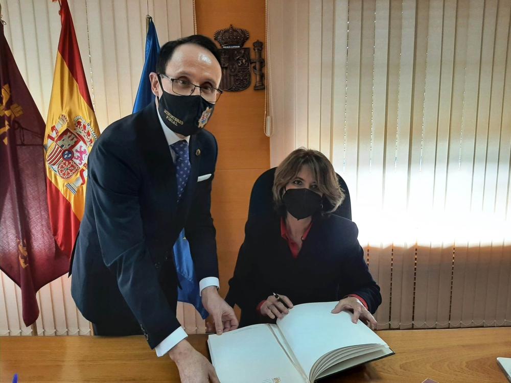 Antes del comienzo del acto Dolores Delgado se ha reunido con fiscales de Murcia, ha visitado la Fiscalía y ha firmado en el libro de honor.
