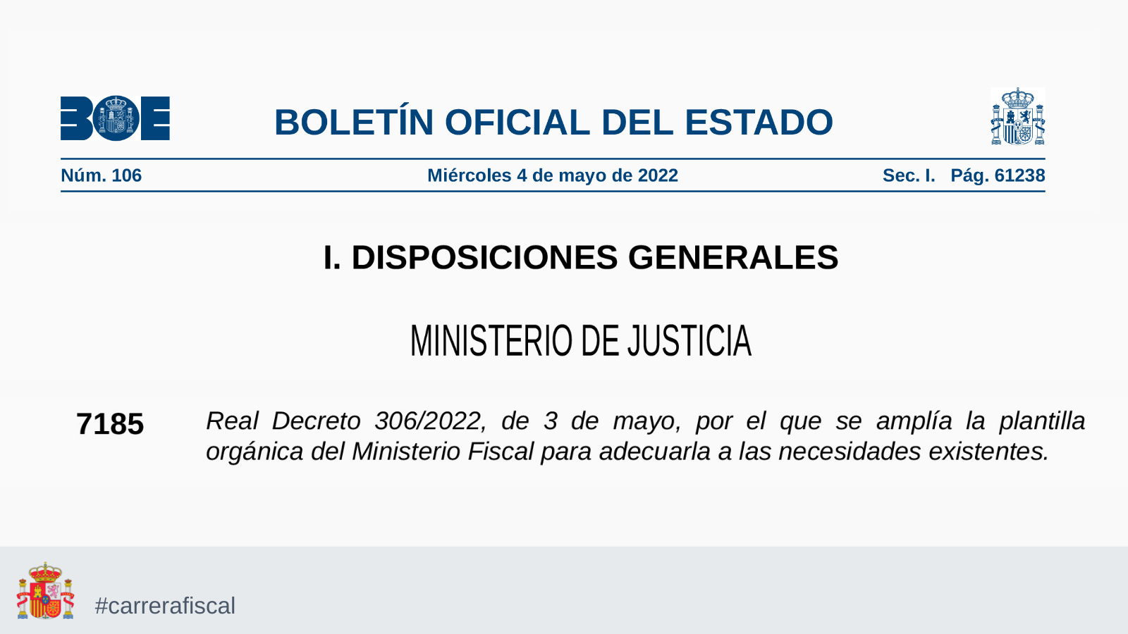 La plantilla orgánica del Ministerio Fiscal se amplía en 60 nuevas plazas