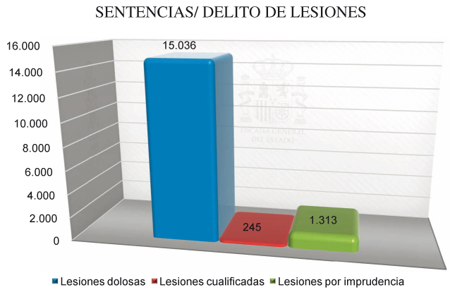Los delitos de lesiones más frecuentes arrojan las siguientes cifras y comparaciones, computando conjuntamente las diligencias previas y urgentes incoadas en cada anualidad.