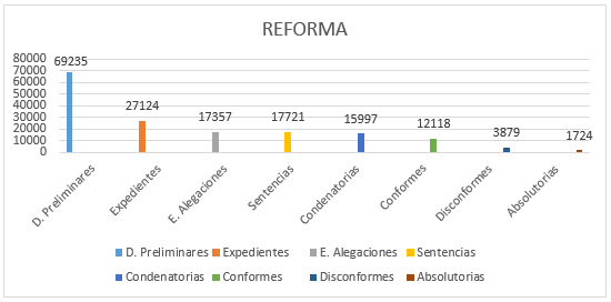 - Se estabilizan los efectos de las reformas legislativas sustantivas y procesales en el ámbito penal: se consolida el descenso en la incoación de diligencias previas.