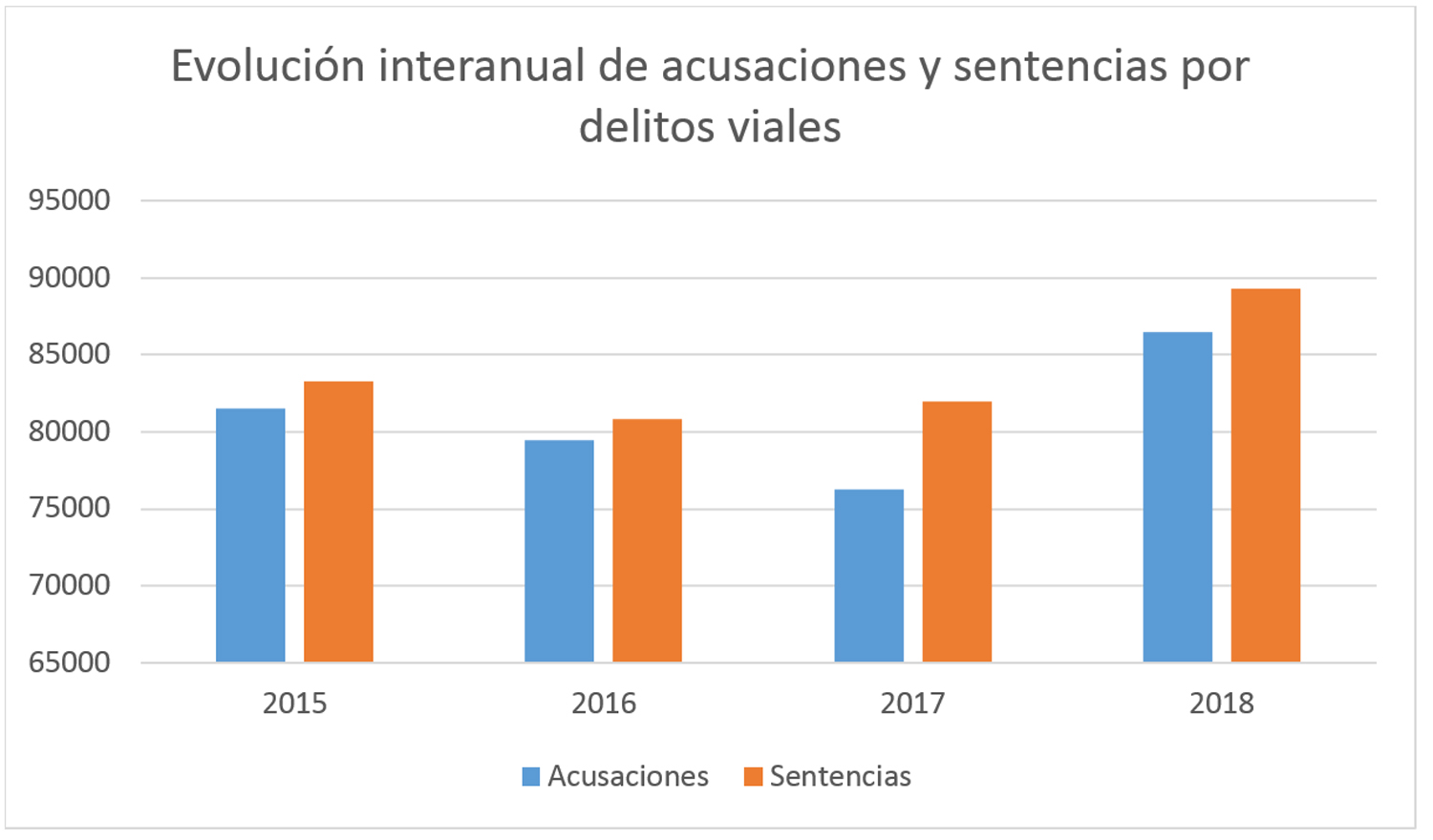 - Ligero descenso de las sentencias dictadas por los Juzgados de lo Penal: 155.288 frente a las 156.651 de 2017. Ligero ascenso de las dictadas por las Audiencias Provinciales 8.909 frente a las 8.798 de 2017.